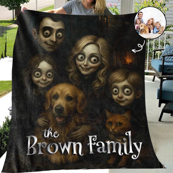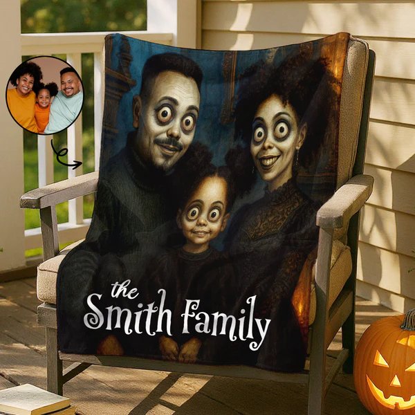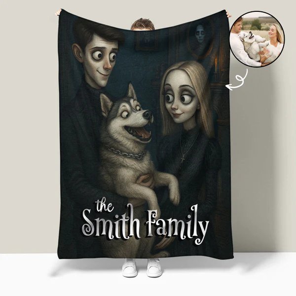 Wrap your family in spooky elegance—your photo transformed into a gothic masterpiece on a cozy fleece blanket.