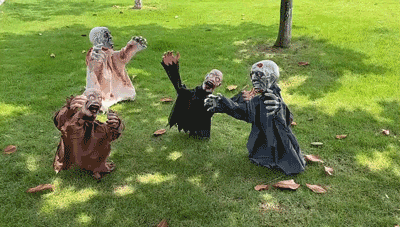 ➤ Sound Sensing and LED Skull Eyes: With the help of sensors, when you make a sound near a zombie, the groundbreaking zombie will sense it, shake and make a scary cry, and the skull eye will also glow red, scaring away anyone or animals near it.